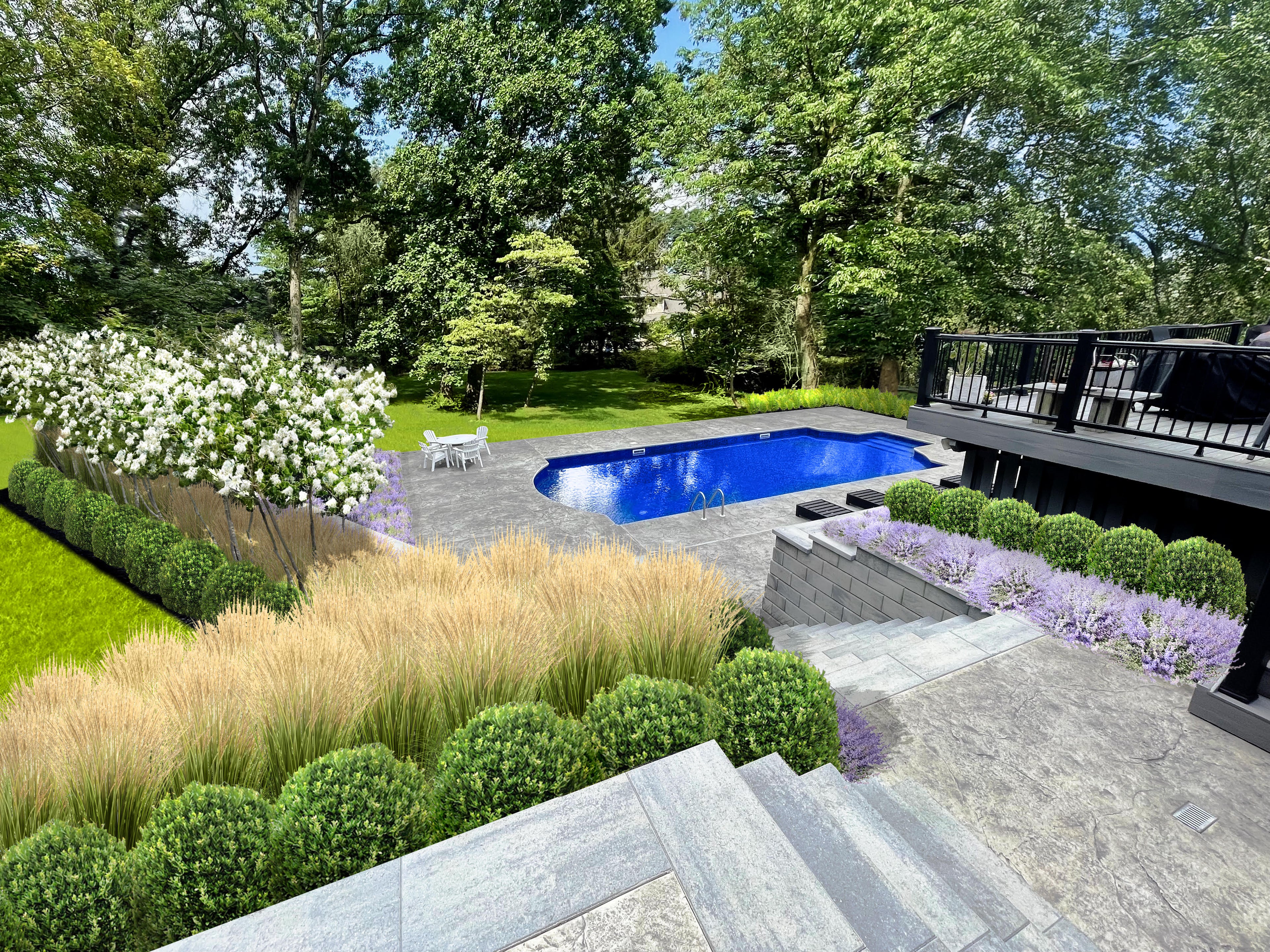 While many of our projects fall into the $5k-$15k range, we also design and install larger outdoor spaces - Including full yard transformations, full rip-out/replacement, and custom features